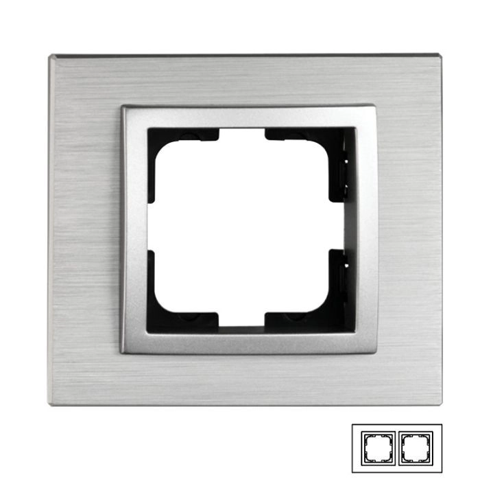 Луксозна рамка Mono Style Aluminium Двойна рамка Сребрист, за ел ключове и контакти за вграден монтаж от сериите Despina и Despina Metallic на Mono Electric.